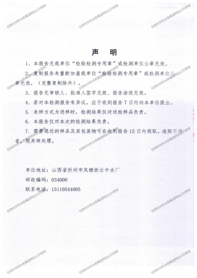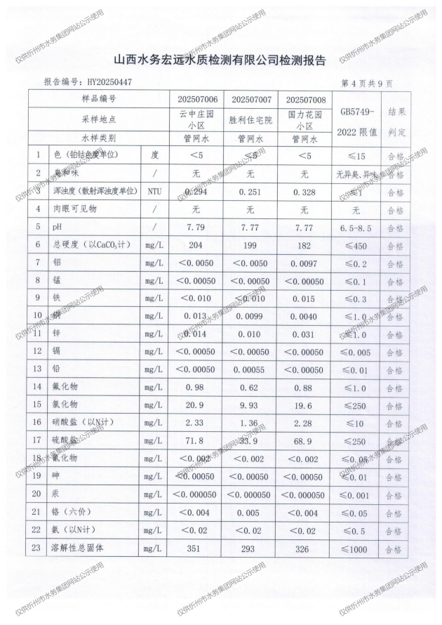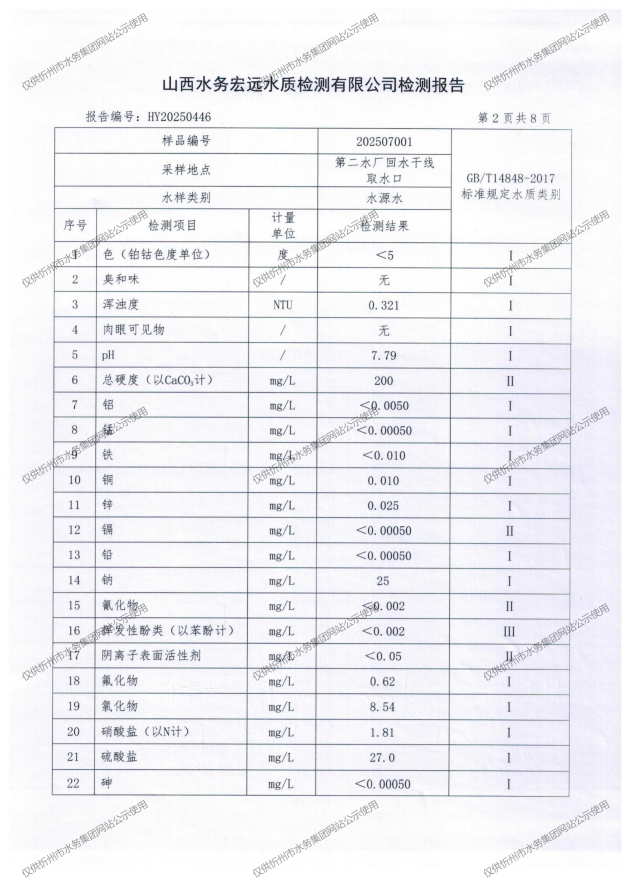 忻州城區(qū)公共供水水源水、出廠水、管網(wǎng)水、管網(wǎng)末梢水2025年7月份水質信息公示