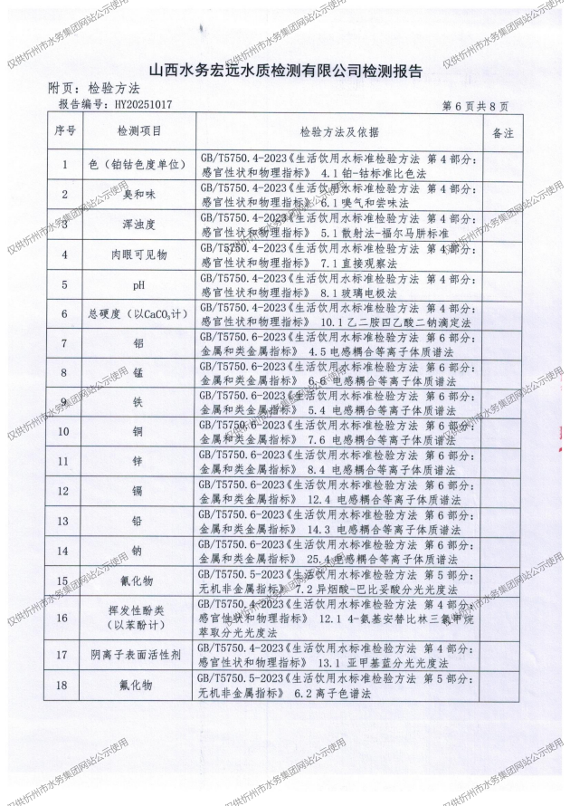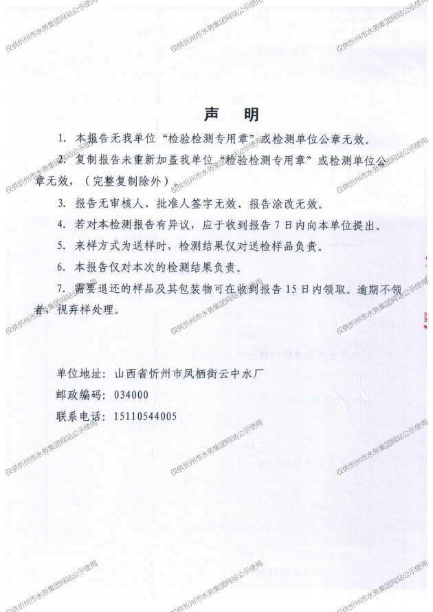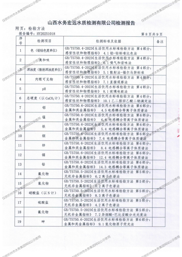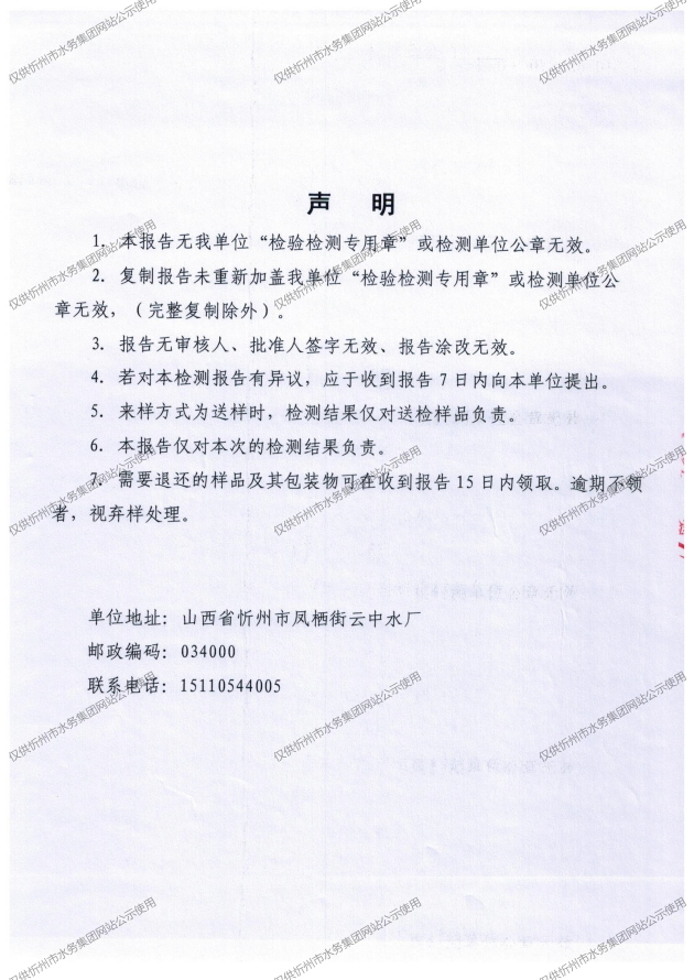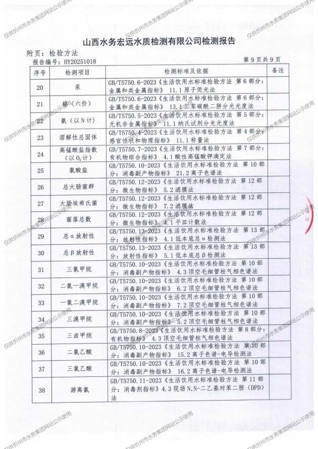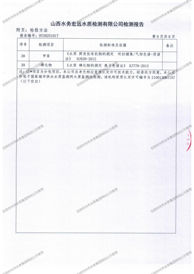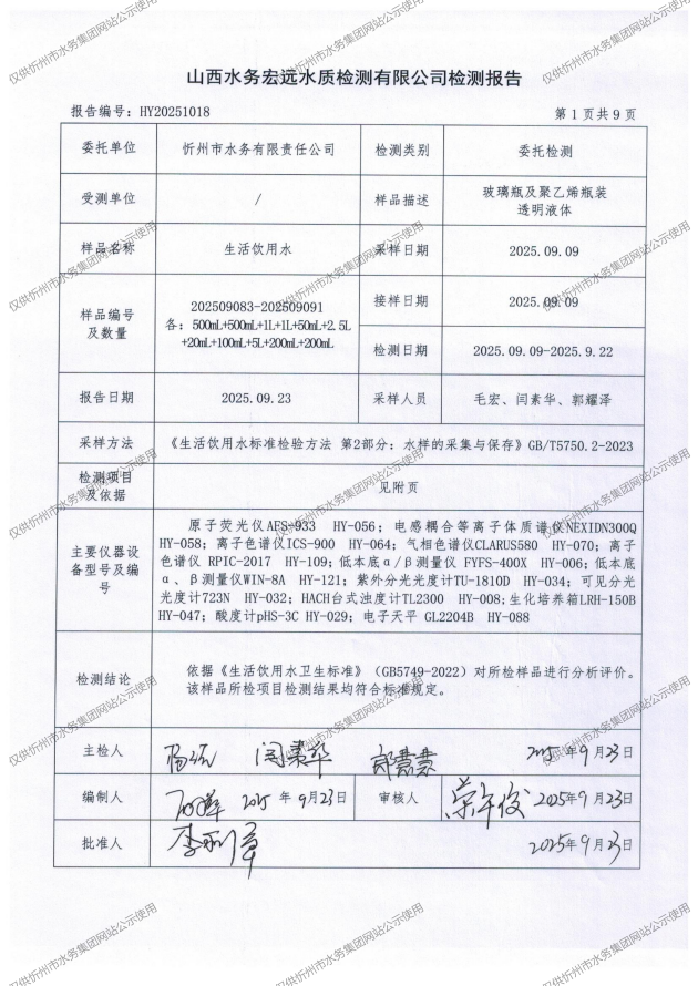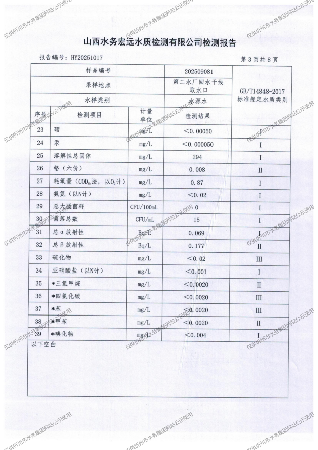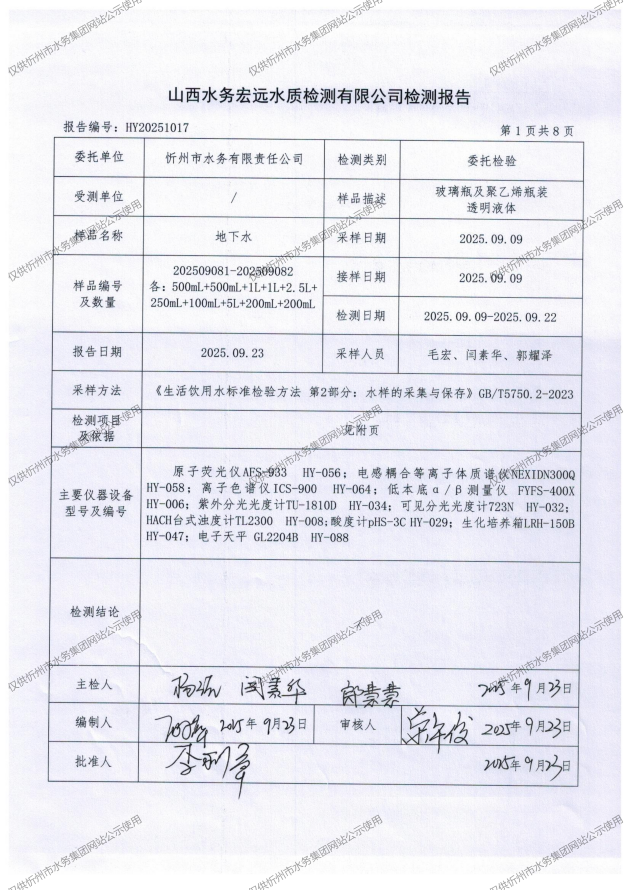 忻州城區(qū)公共供水水源水、出廠水、管網水、管網末梢水2025年9月份水質信息公示